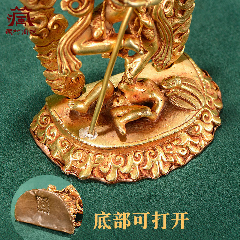 📚 尼泊尔手工铜全鎏金 《狮面空行母》 铜像像 3寸随身小铜像