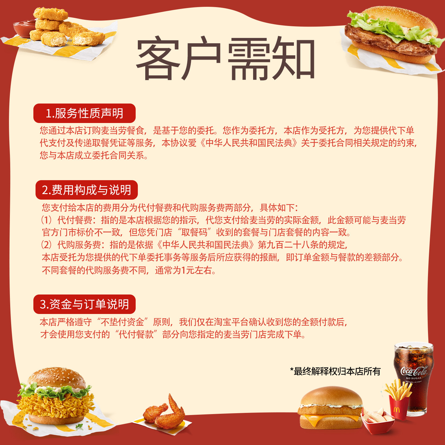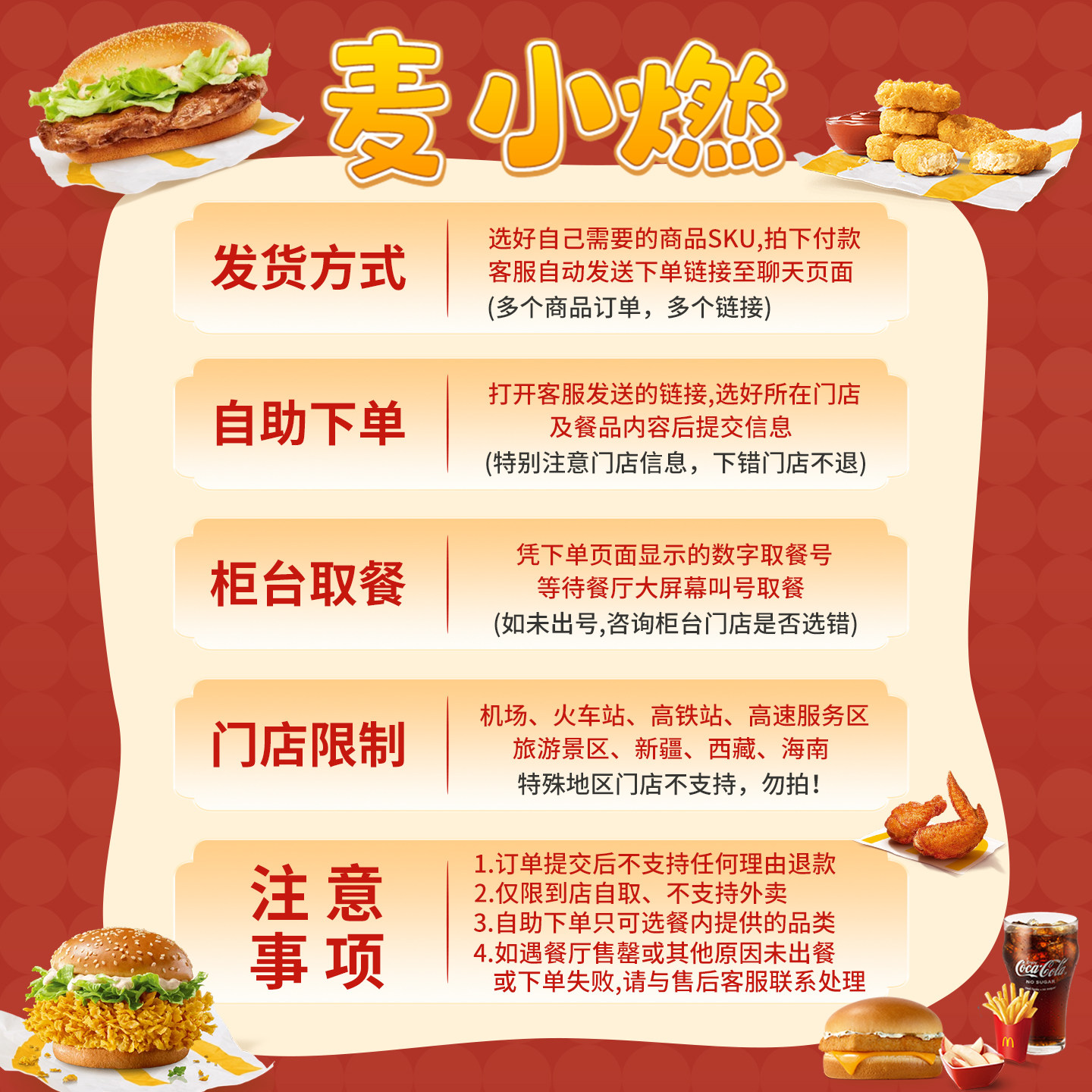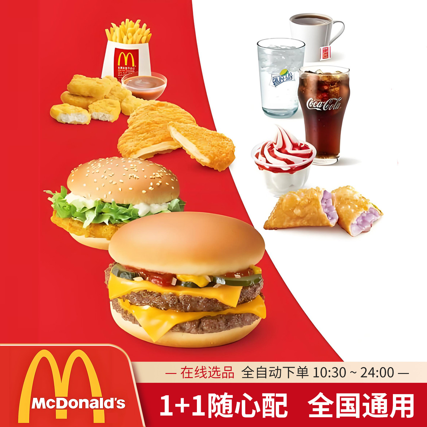 📚 麦当劳代下单1+1随心配双层吉士汉堡薯条可乐鸡块一加一全国通用