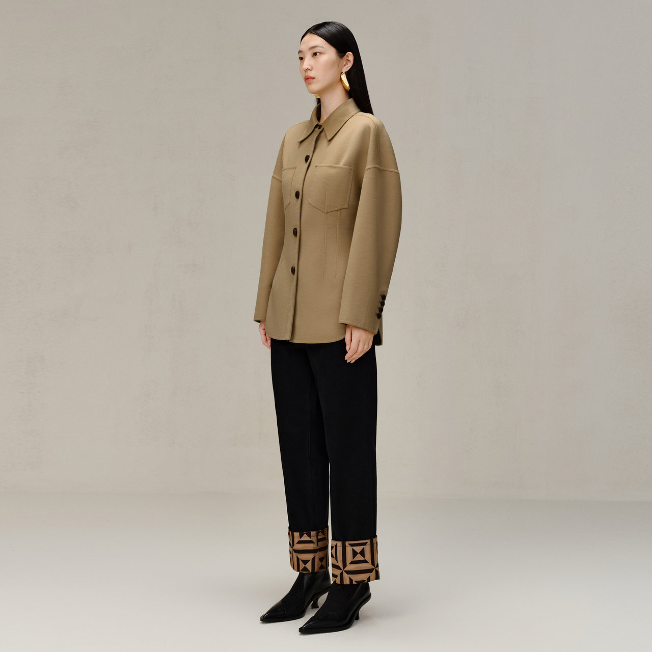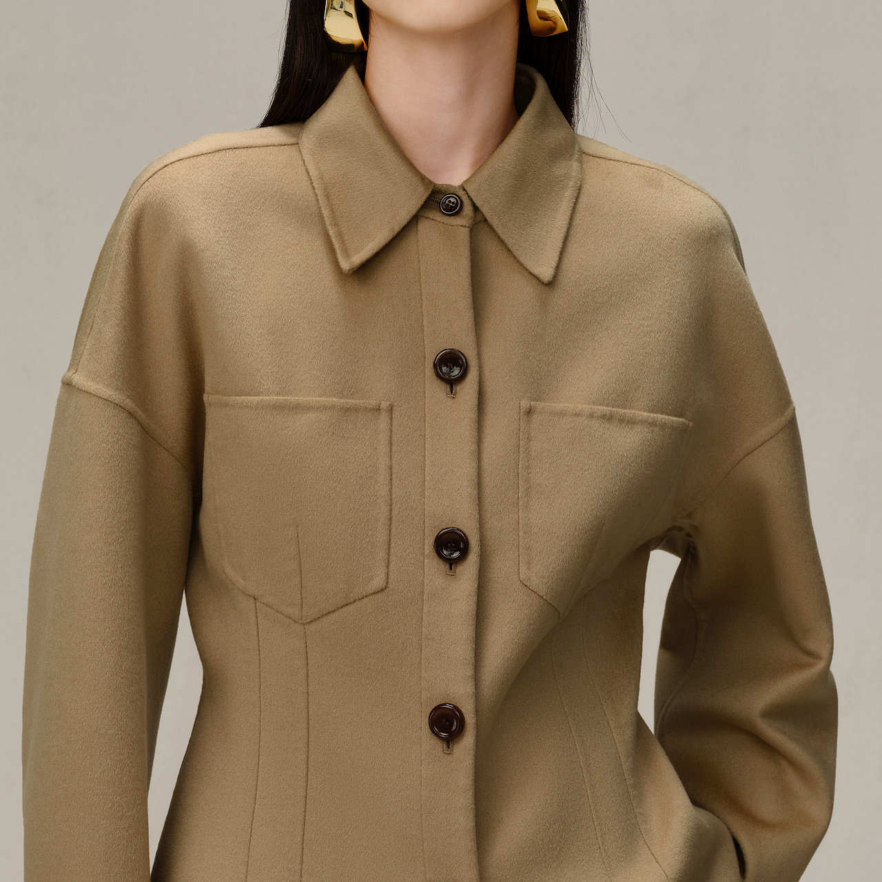 📚 【电商专款】IMM尹默女装羊毛双面呢撞色收腰衬衫外套