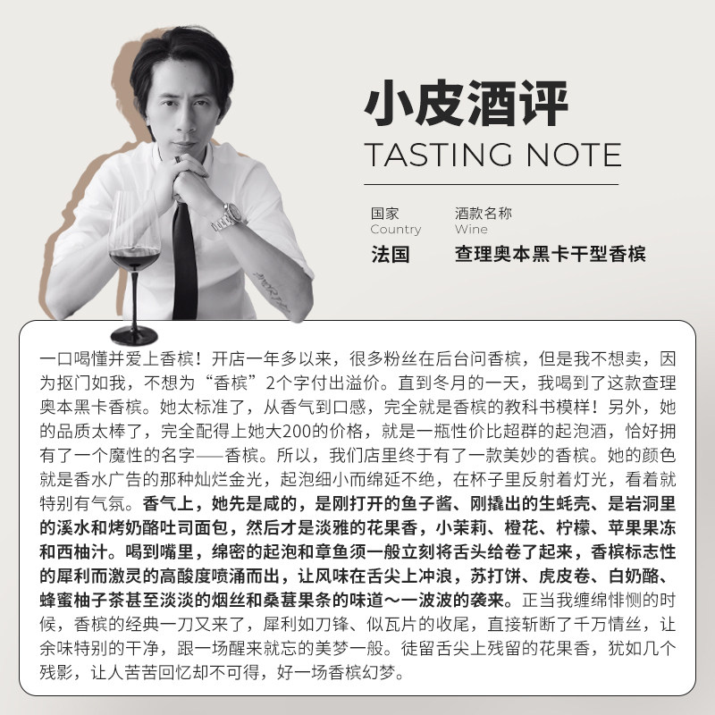 📚 经典香槟 如梦如幻!法国查理奥本黑卡干型Champagne起泡葡萄酒