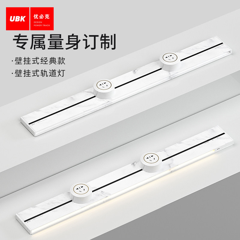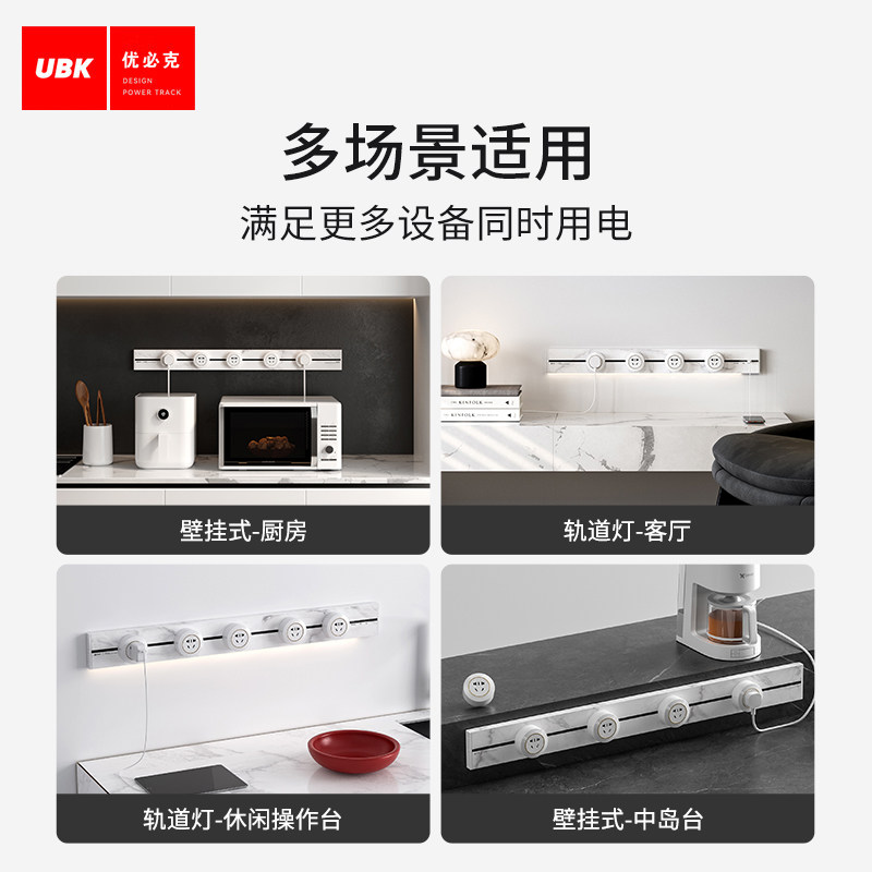 📚 优必克岩白大理石纹可移动电力轨道插座滑轨式滑动厨房感应灯明装
