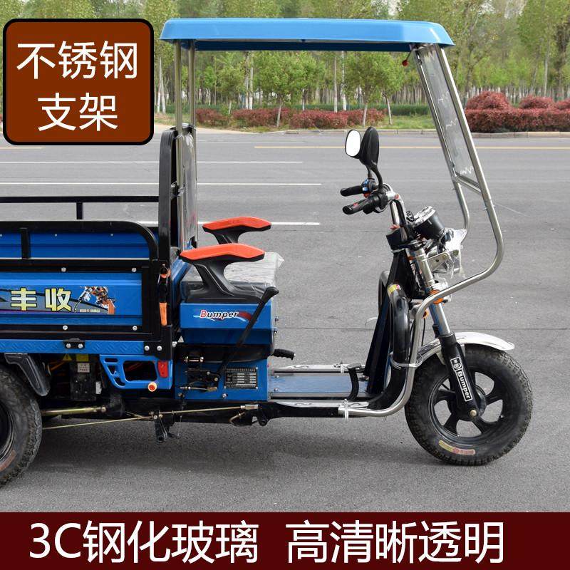 📚 电动三轮车不锈钢雨棚前车头挡雨遮阳透明棚快递员驾驶车休闲车棚