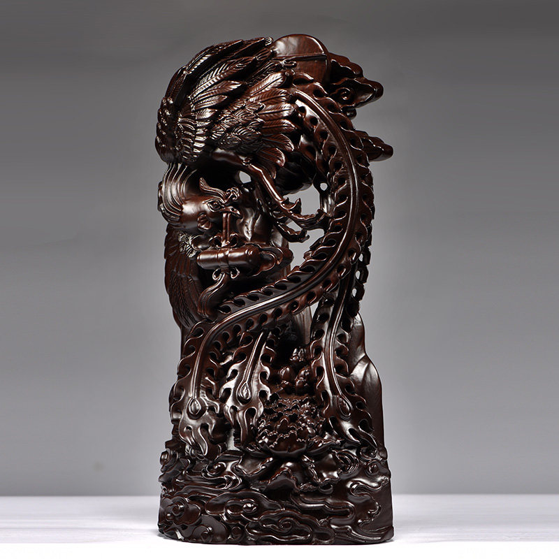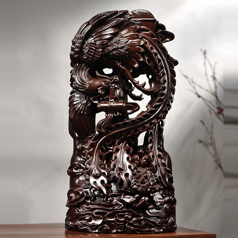 📚 黑檀木雕刻凤凰摆件实木质吉祥家居装饰品红木工艺品新婚新居送礼