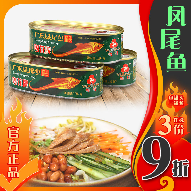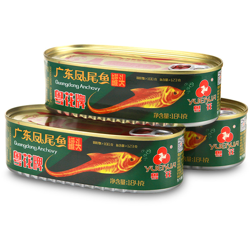 📚 粤花牌罐头 广东凤尾鱼184g*3罐 原味原条鱼肉即食香酥下饭