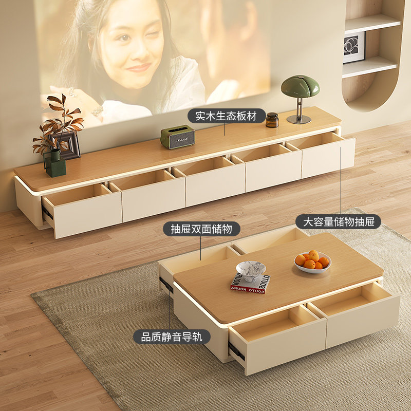 📚 奶油风电视柜落地家用小户型客厅电视机柜茶几组合原木风新款地柜