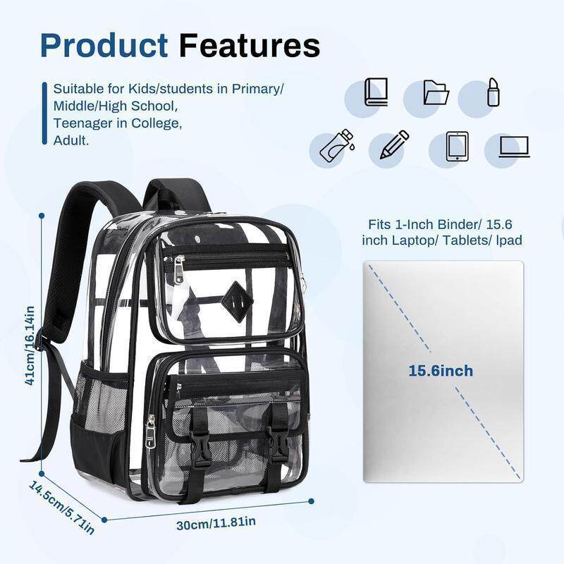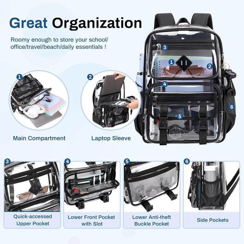 📚 Clear Backpack with Multiple Pockets for School Travel and
