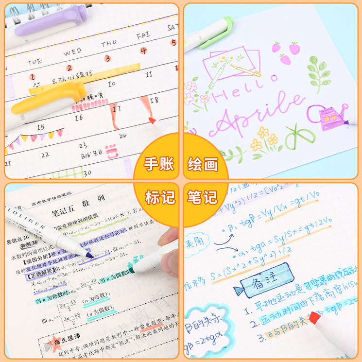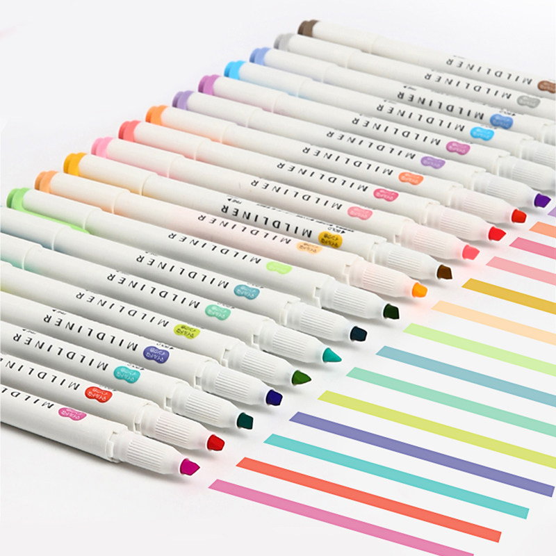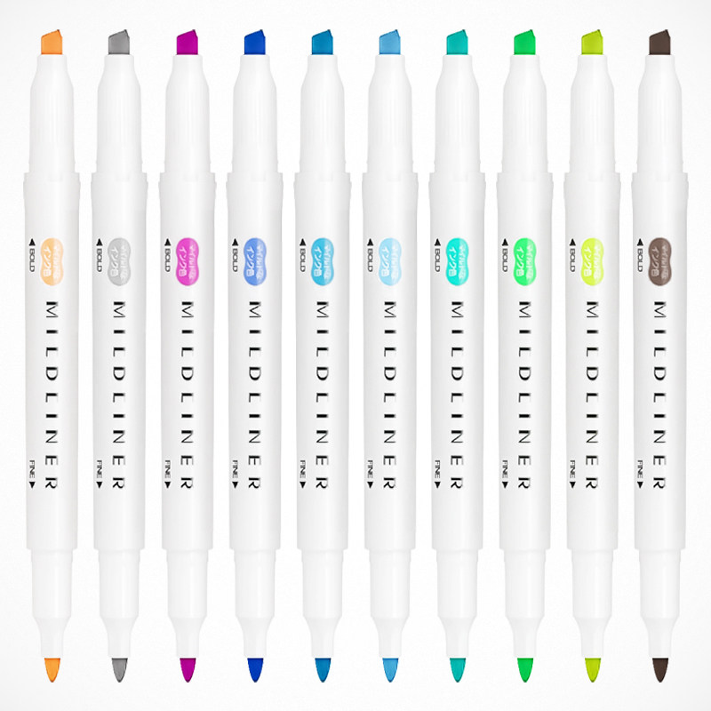 📚 日本ZEBRA斑马荧光色笔wkt7淡色系双头荧光笔套装手账划重点标记笔灰色学生用彩色记号笔