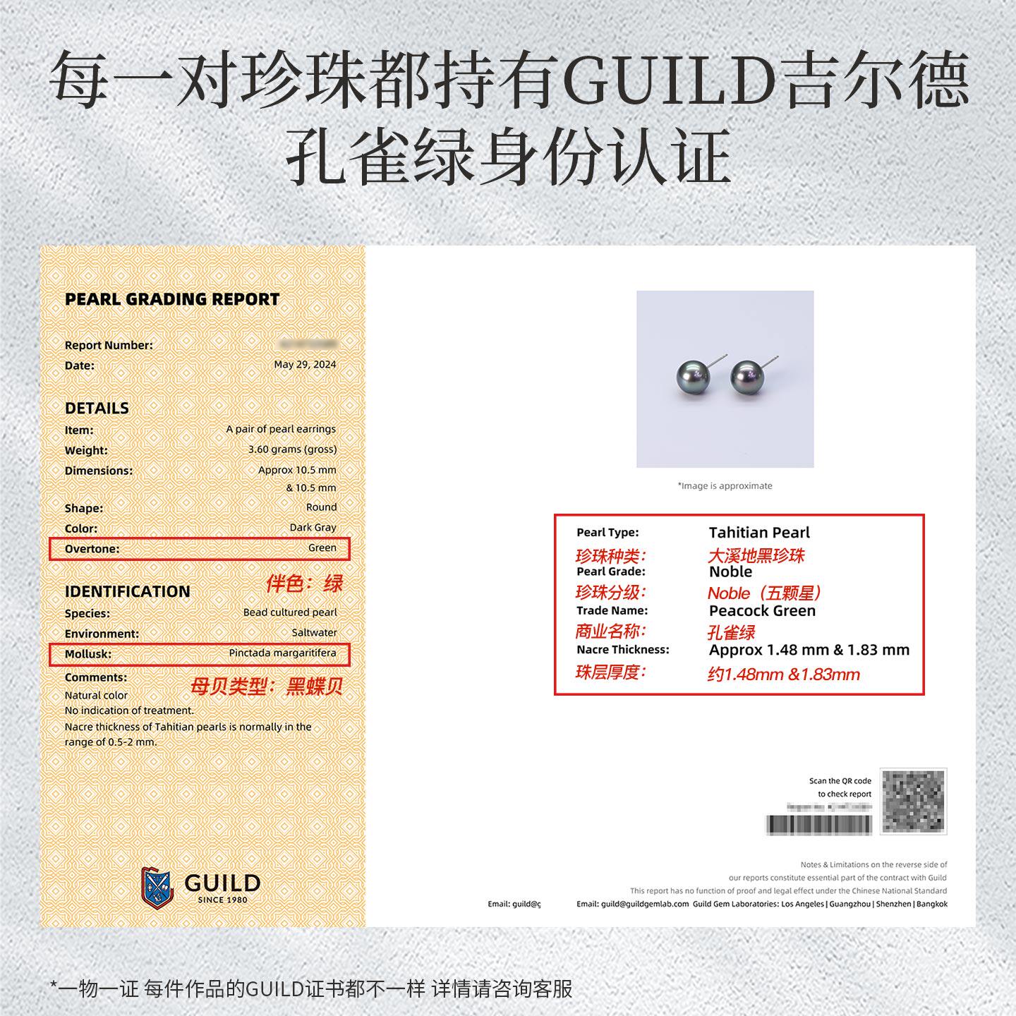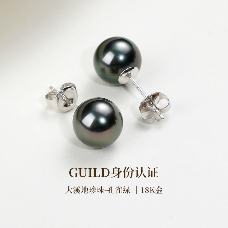 📚 GiO珠宝 18K金大溪地海水黑珍珠耳钉女GUILD孔雀绿耳饰耳环素钉