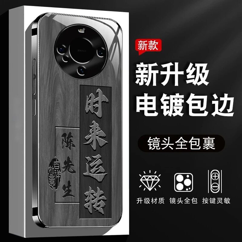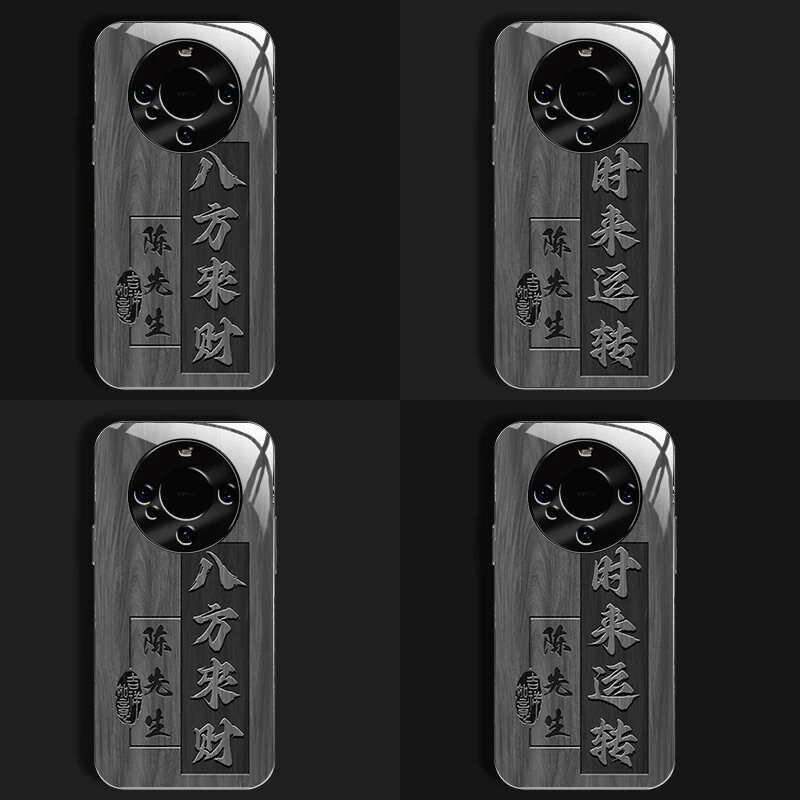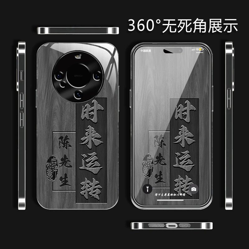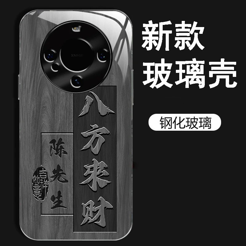 📚 八方来财姓氏定制钛灰玻璃壳适用华为mate60手机壳新款高级感mate70pro全包防摔保护套pro+轻奢男款高档外壳