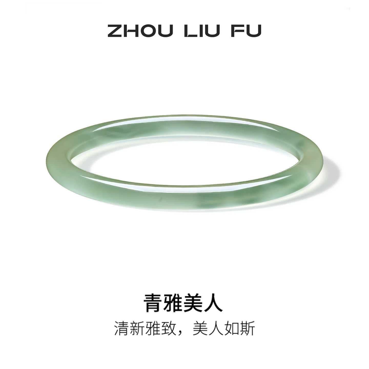 📚 周六福果绿玉髓手镯圆条叮当镯新中式国风女神节礼物送妈妈