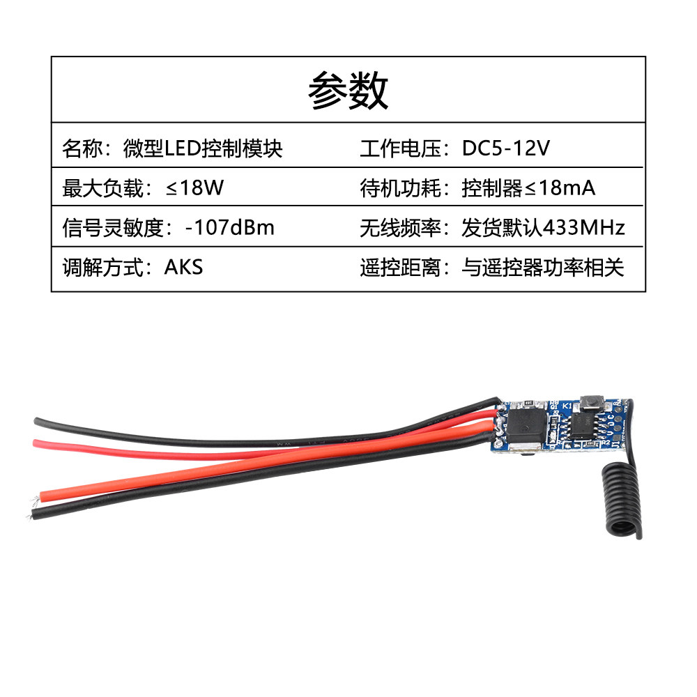 📚 DC5-12V微型LED灯条控制模块无线开关远程遥控433MHz接收器