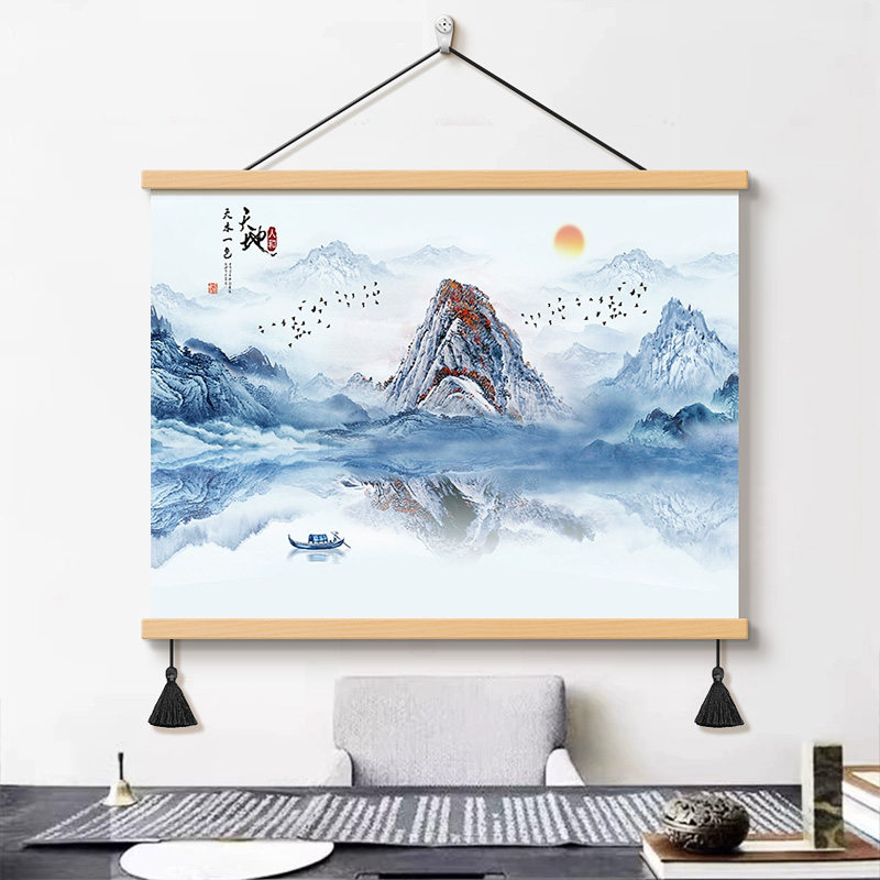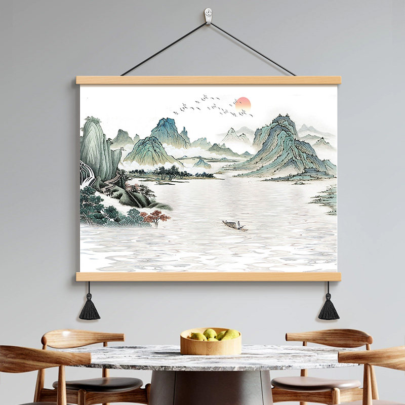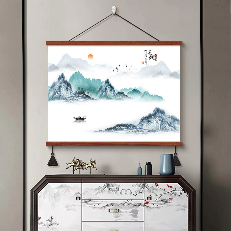 📚 壮丽山河客厅玄关山水画新中式风景壁画背景墙装饰画茶室书房挂画