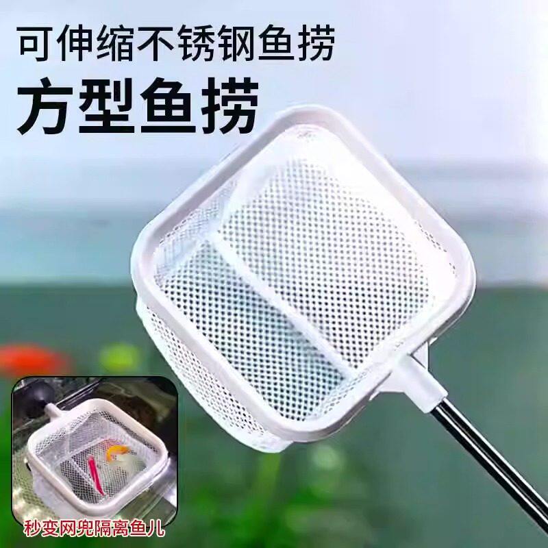 📚 可伸缩捞鱼网鱼缸捞小号3d渔捞抄网兜密网隔离方形捕捉吸盘过滤网