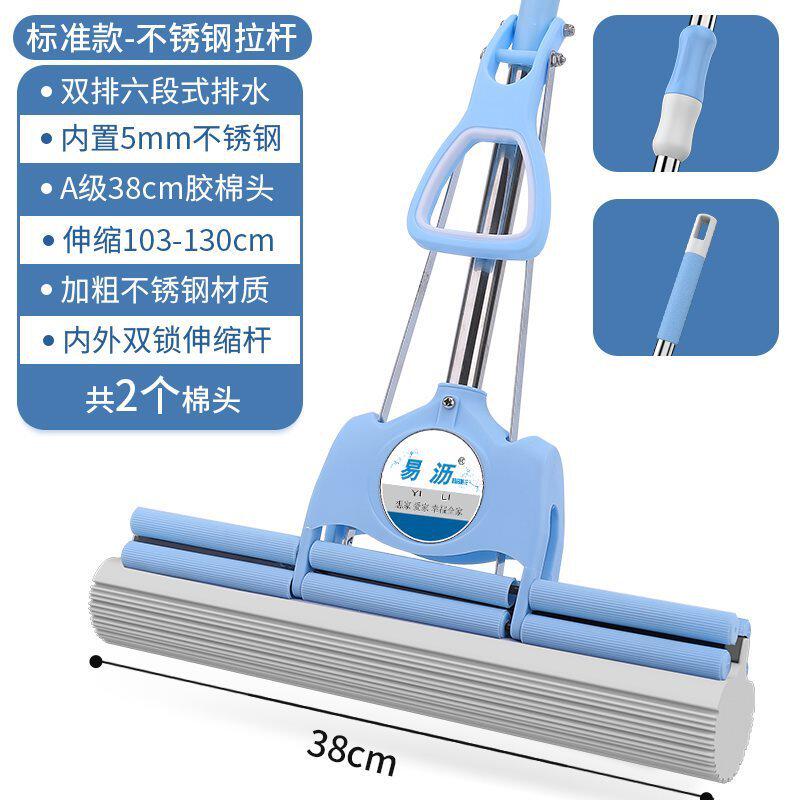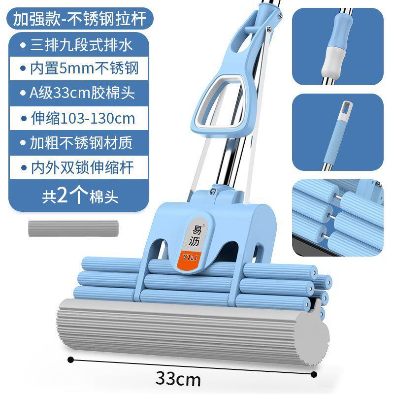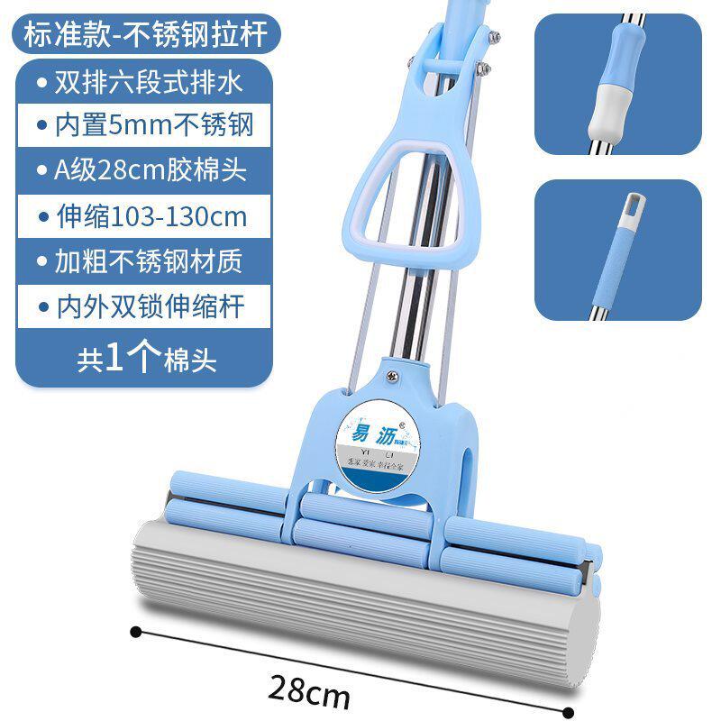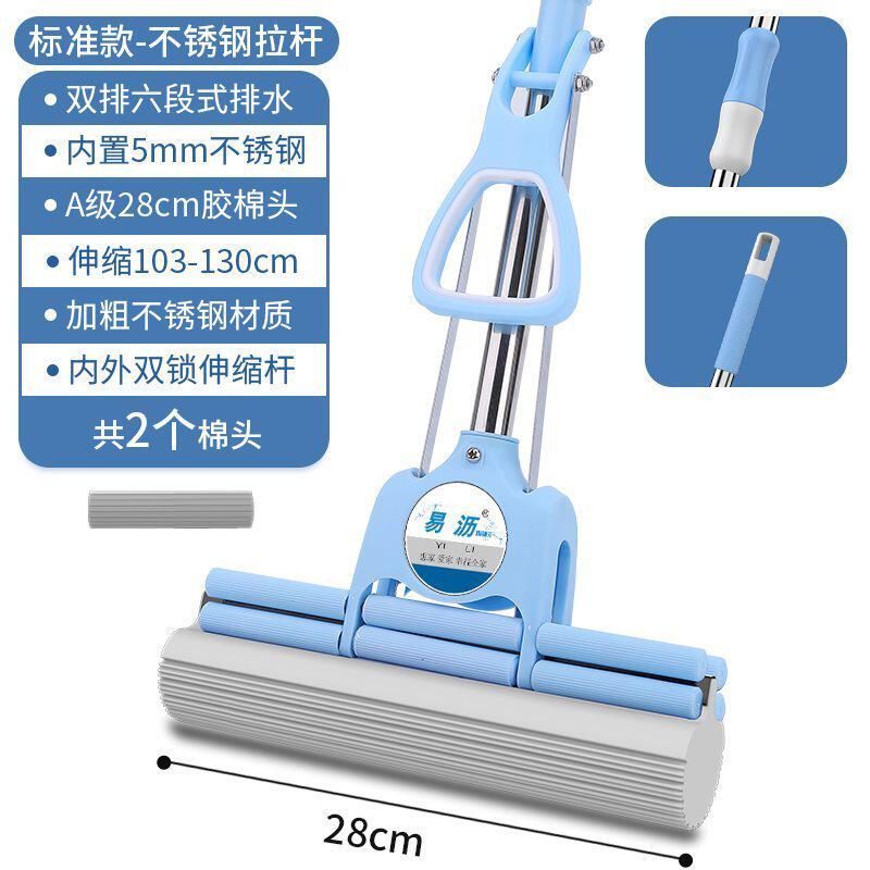 📚 m^不锈钢海绵拖把家用免手洗吸水滚轮加粗结实耐用式胶棉头地