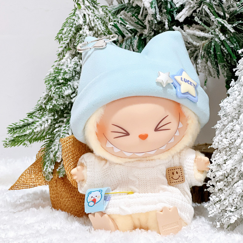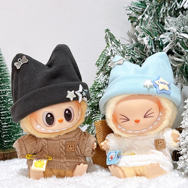📚 新款拉布布娃衣17cm一二代搪胶公仔坐坐派对娃衣卫衣毛衣帽子换装