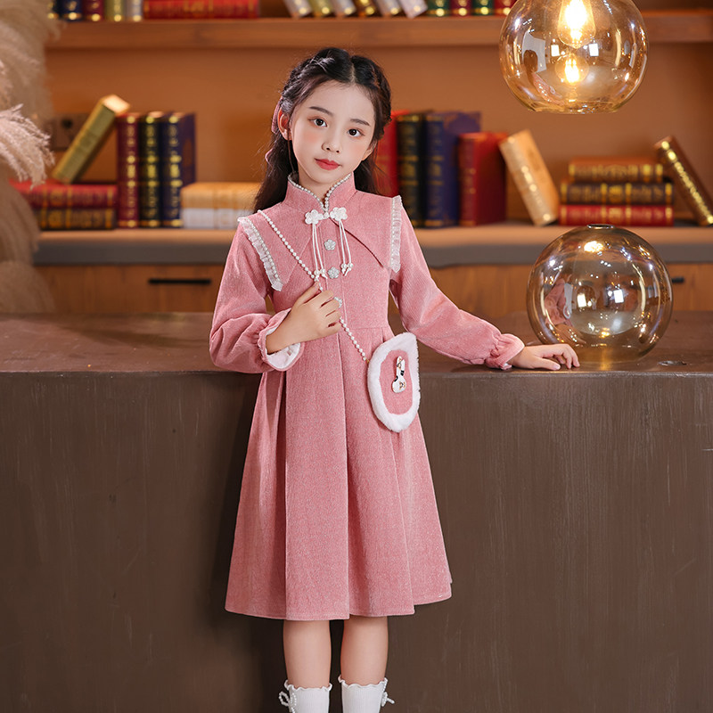 洋气女童连衣裙长袖中式