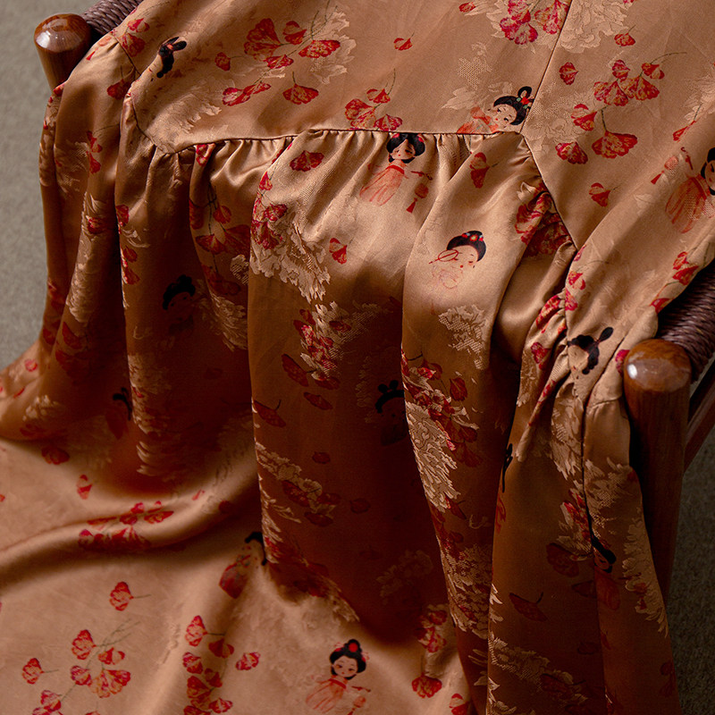 📚 现货 重缎花萝红云纱香云纱真丝V领背心裙100%桑蚕丝宽松连衣裙夏