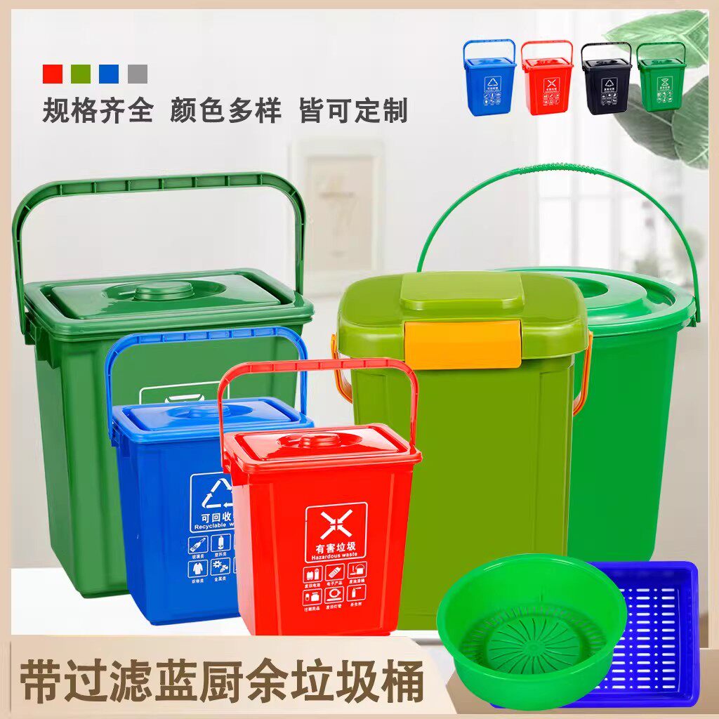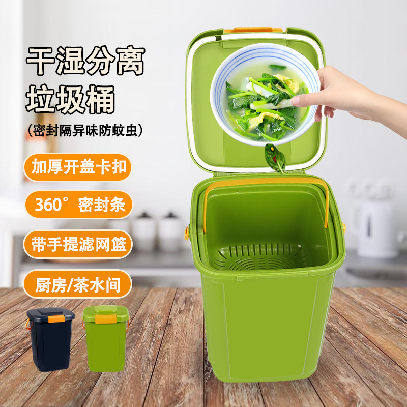 📚 A.CRTY厨房垃圾桶家用厨于带盖带手提滤网干湿分离圆形污水桶绿色