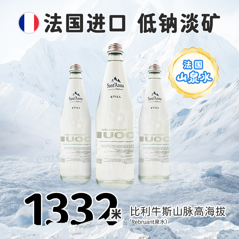 📚 【750ml玻璃瓶】法国原装进口天然山泉水高端饮用水低钠淡矿泉水