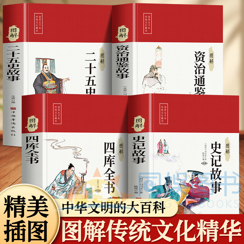 📚 4册资治通鉴+二十五史+四库全书+史记故事 全解中国历史故事书史记正版资质通鉴历史书籍小学生青少年版阅读故事图解历史史记书籍