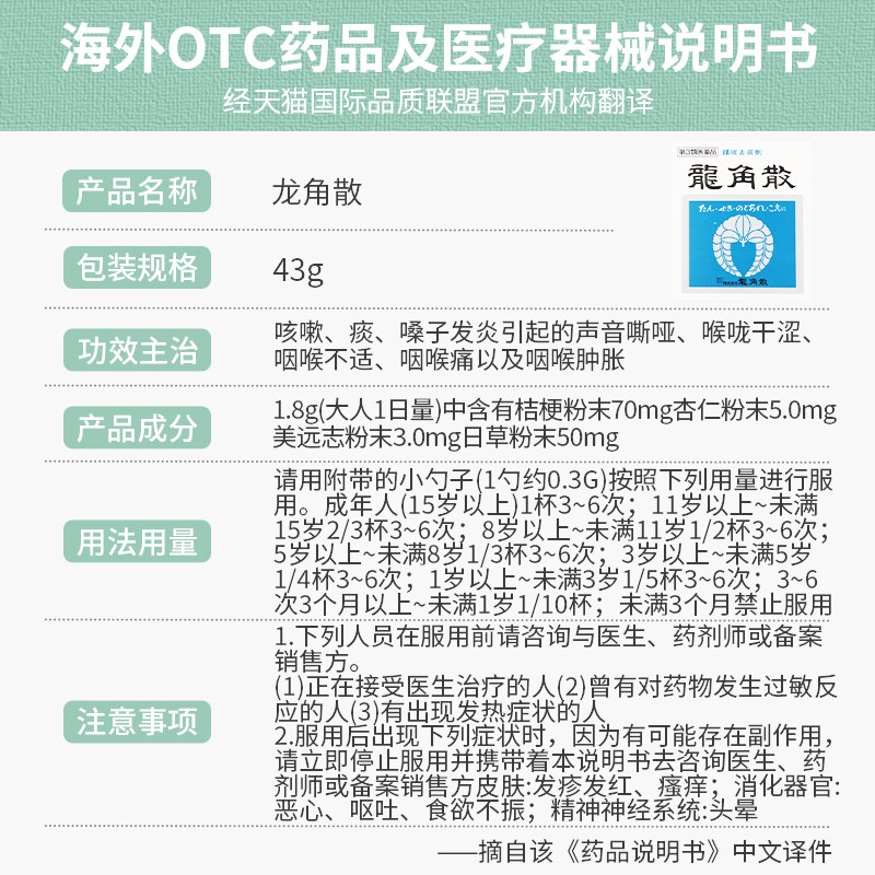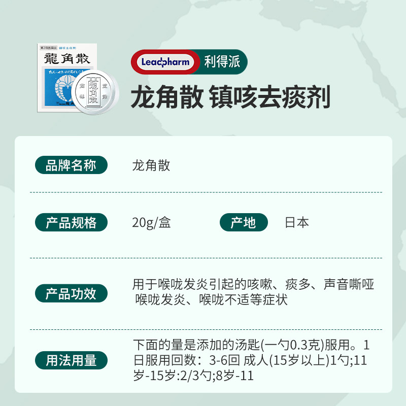 📚 日本原装进口龙角散粉末20g化痰止咳咽喉疼痛成人咽喉炎咳嗽药