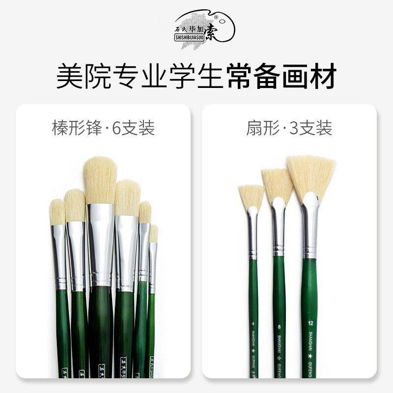 📚 石氏毕加索羊毛水粉笔套装猪鬃油画笔鱼尾色彩笔颜料笔丙烯画笔专业全套美术生专用初学者学生绘画用排笔刷