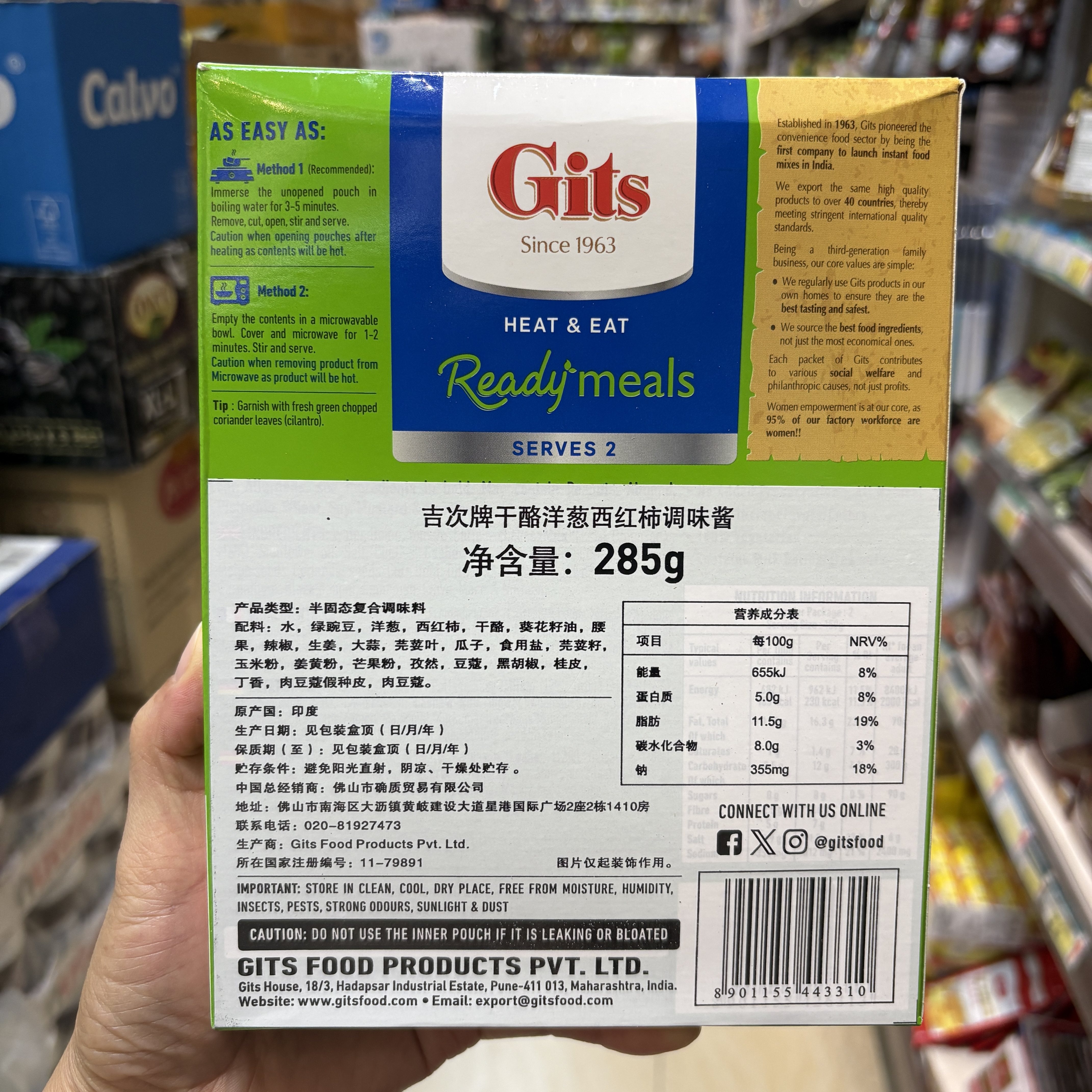 📚 印度Gits吉次牌干酪洋葱西红柿调味酱MATER PANEER 285g 加热即食