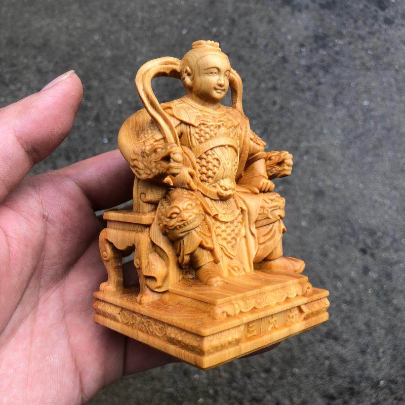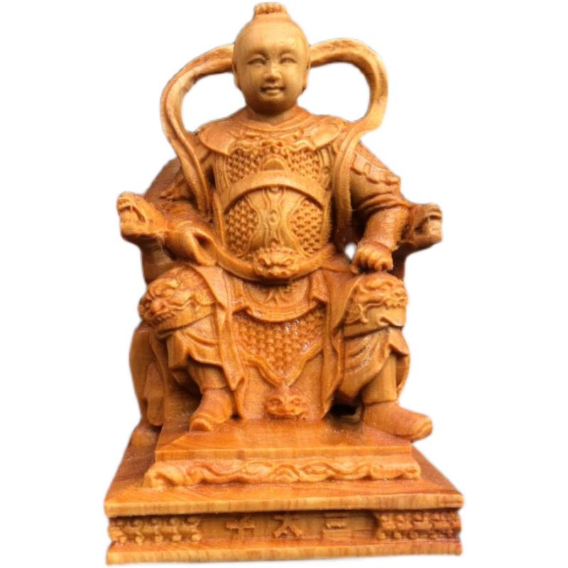 📚 崖柏黄杨木雕哪吒三太子五营神将人物摆件家用佛堂供奉装饰太子爷