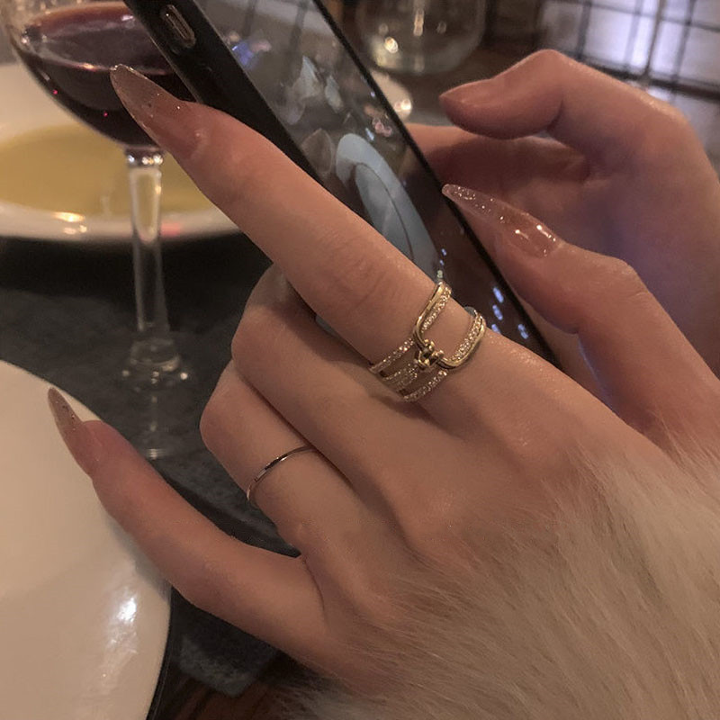 📚 名媛赴会~高级感轻奢戒指女ins小众设计多层微镶精致超闪指环开口