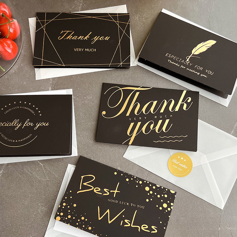 📚 黑色烫金贺卡 商务送礼感谢留言卡 感恩节生日祝福感恩卡片带信封