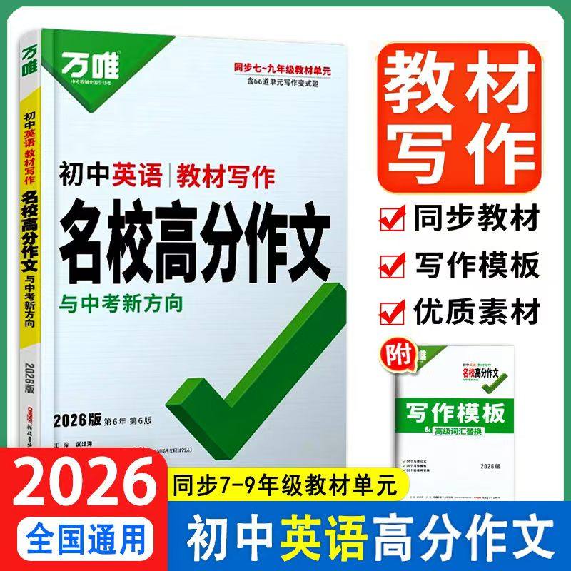 📚 正版速发2026万唯初中英语教材写作名校高分作文七八九年级范文素材模板满分全国词汇同步