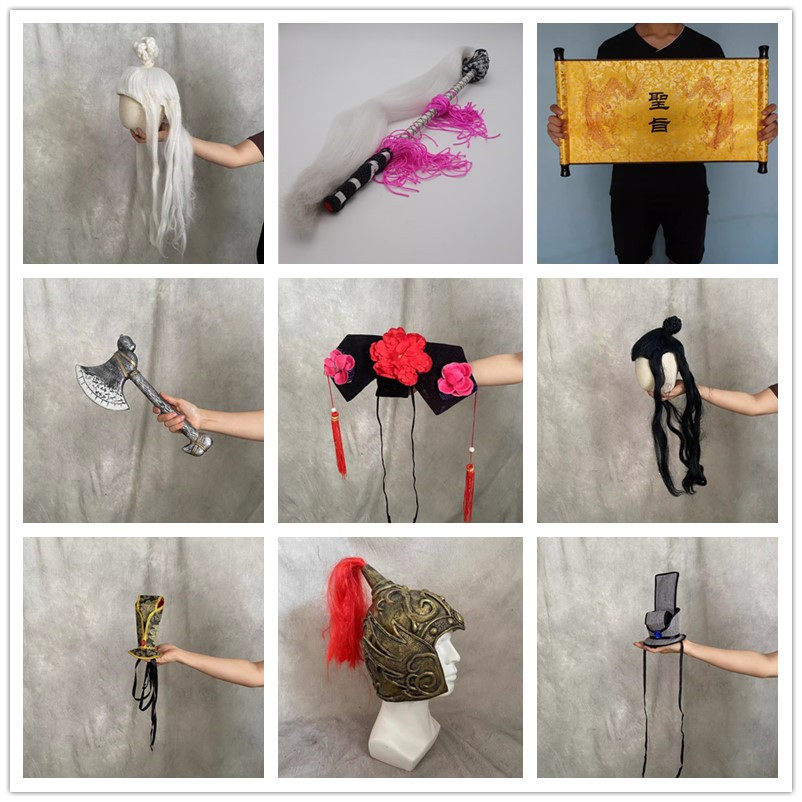 📚 古装道具扇子剑假发头冠头饰佛珠钵盂头盔手帕拂尘圣旨靴子出租