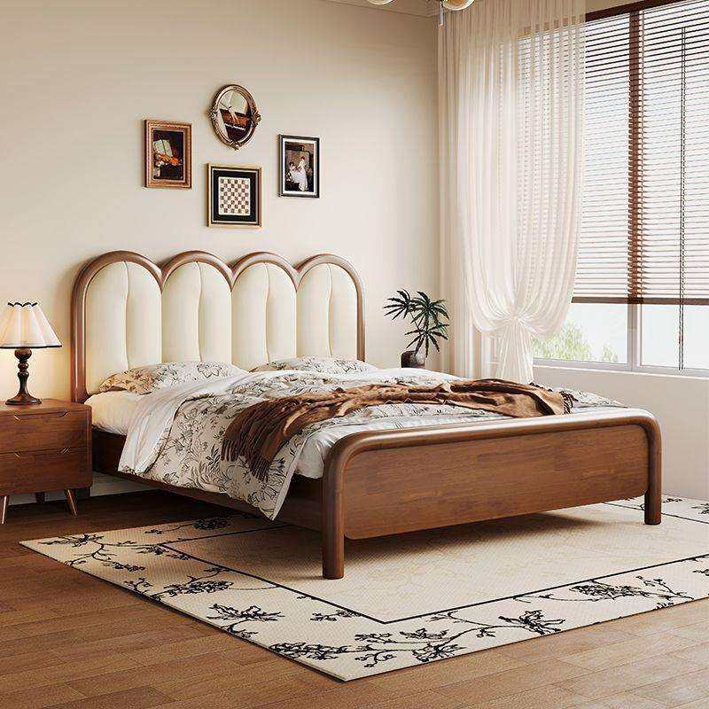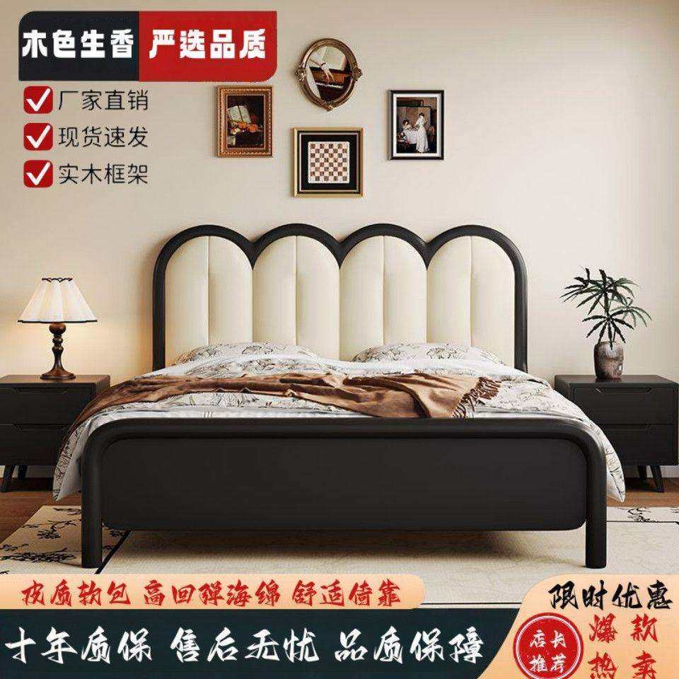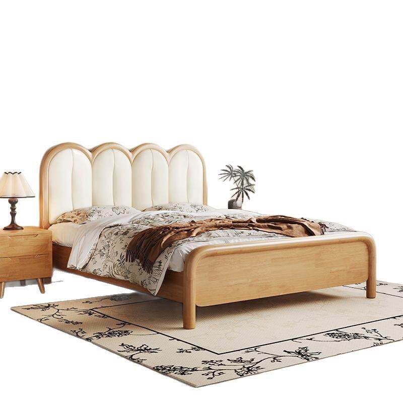 📚 奶油风实木床1米5主卧大床1.8m家用橡胶木榫卯床头柜优质床垫