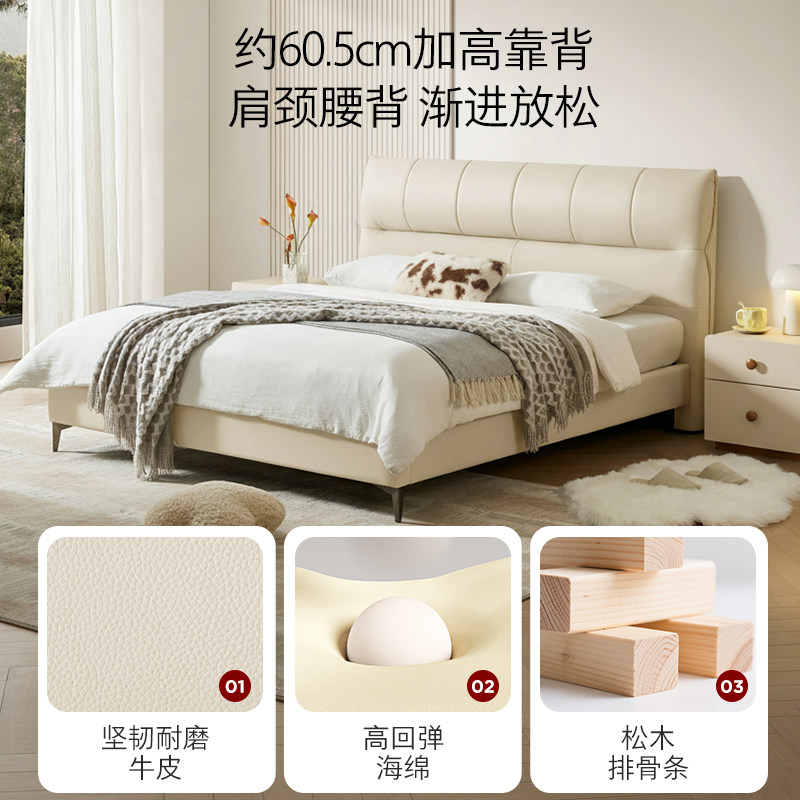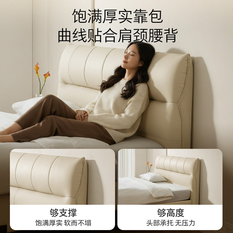 📚 顾家家居现代简约卧室主卧大床高端大气平移储物床真皮床婚床8566