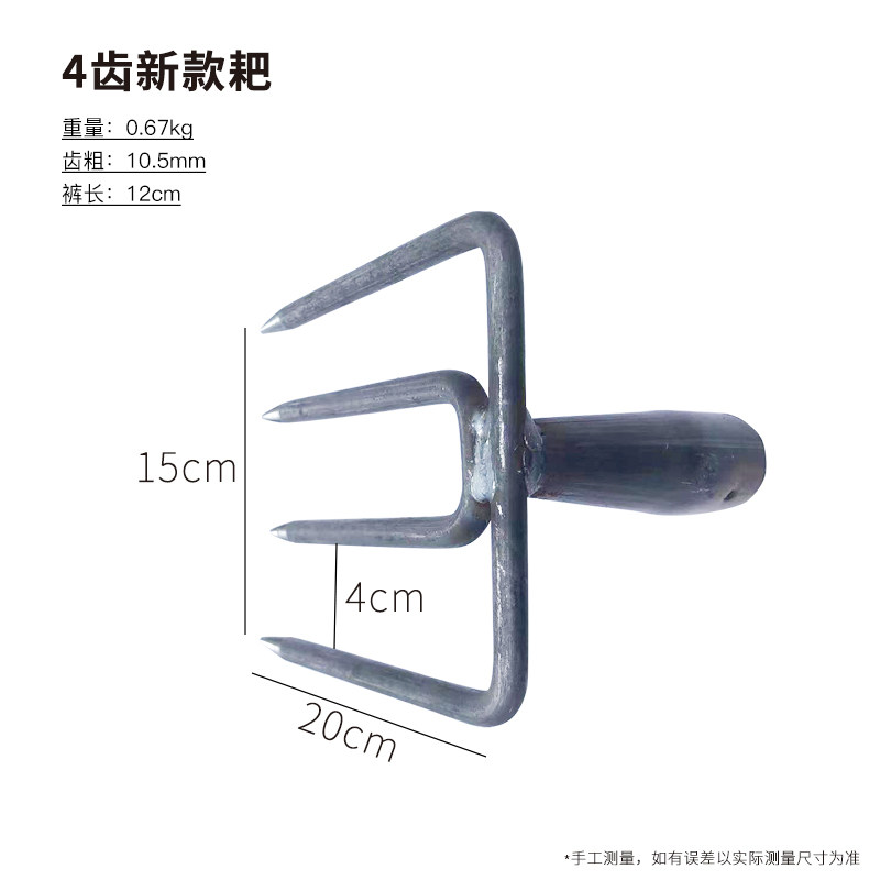 📚 翻土钢耙子翻地松土神器二齿三齿四齿钉耙农用工具开荒种菜大锄头