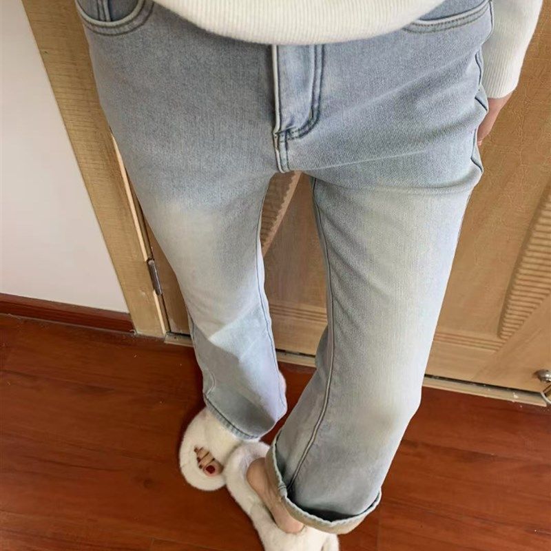 💖"冬季新宠!浅蓝色加绒加厚微喇牛仔裤,让你成为冬季时尚达人👗"