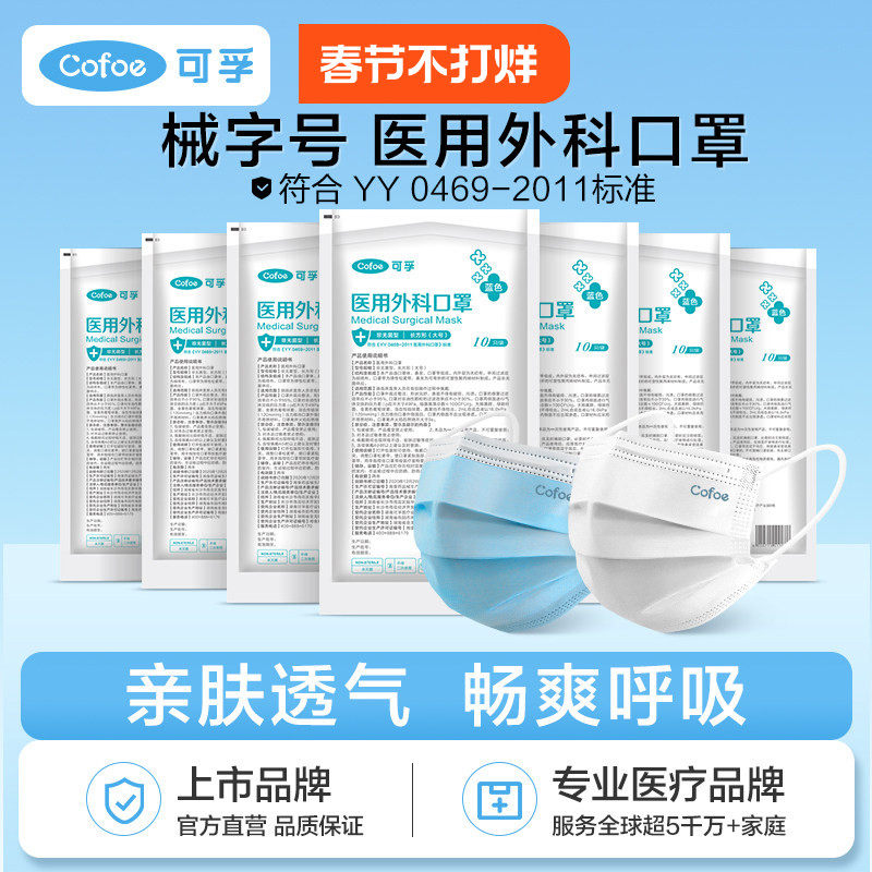📚 可孚一次性医疗级别医用外科口罩白色不勒耳朵三层正品官方旗舰店