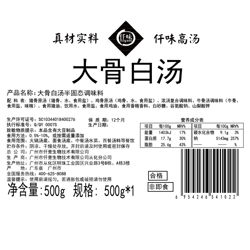 📚 仟味大骨白汤500g 骨汤火锅底料 火锅清汤 原味汤粉底料 浓骨白汤