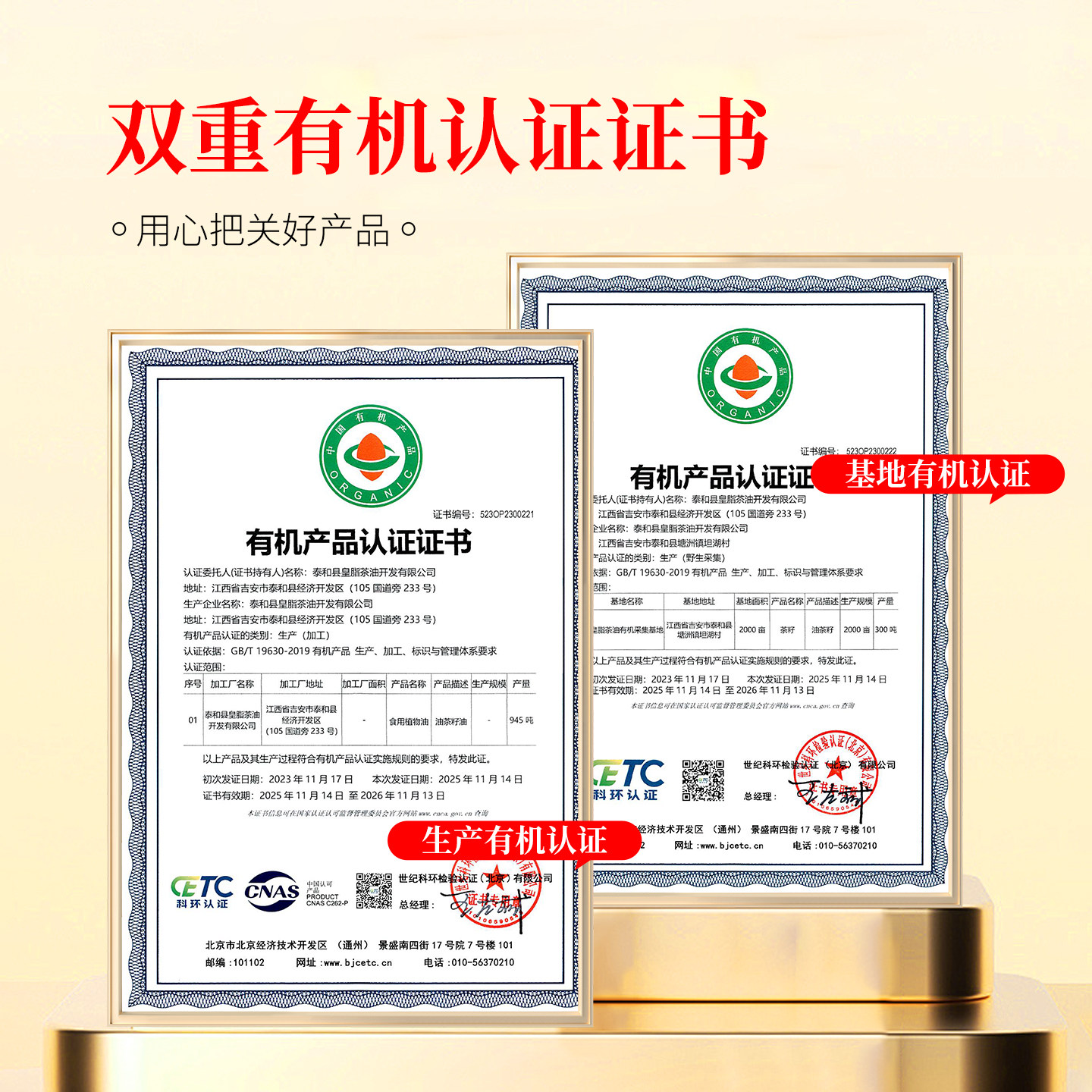 📚 一江秋有机茶油500ml*2压榨油茶籽油木油山茶籽油食用油小瓶装