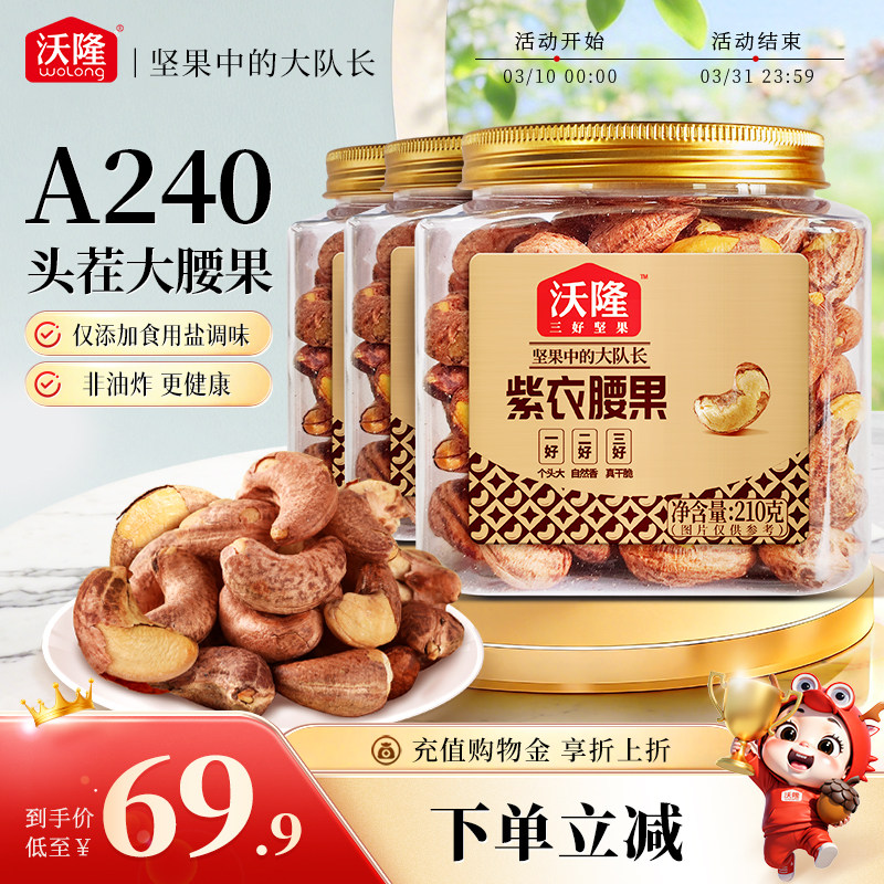 📚 沃隆紫衣腰果210g*3罐越南特级腰果紫皮健康营养小罐装坚果零食