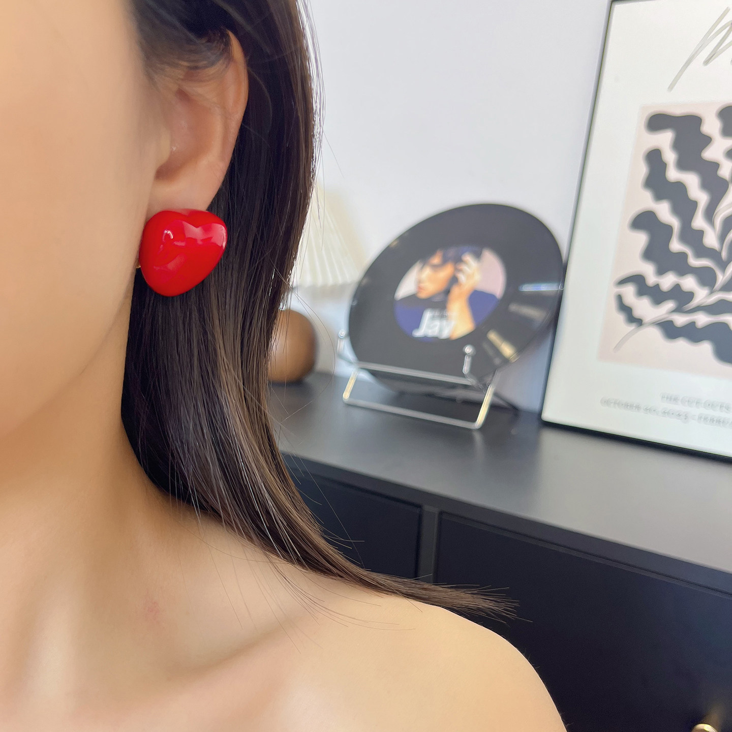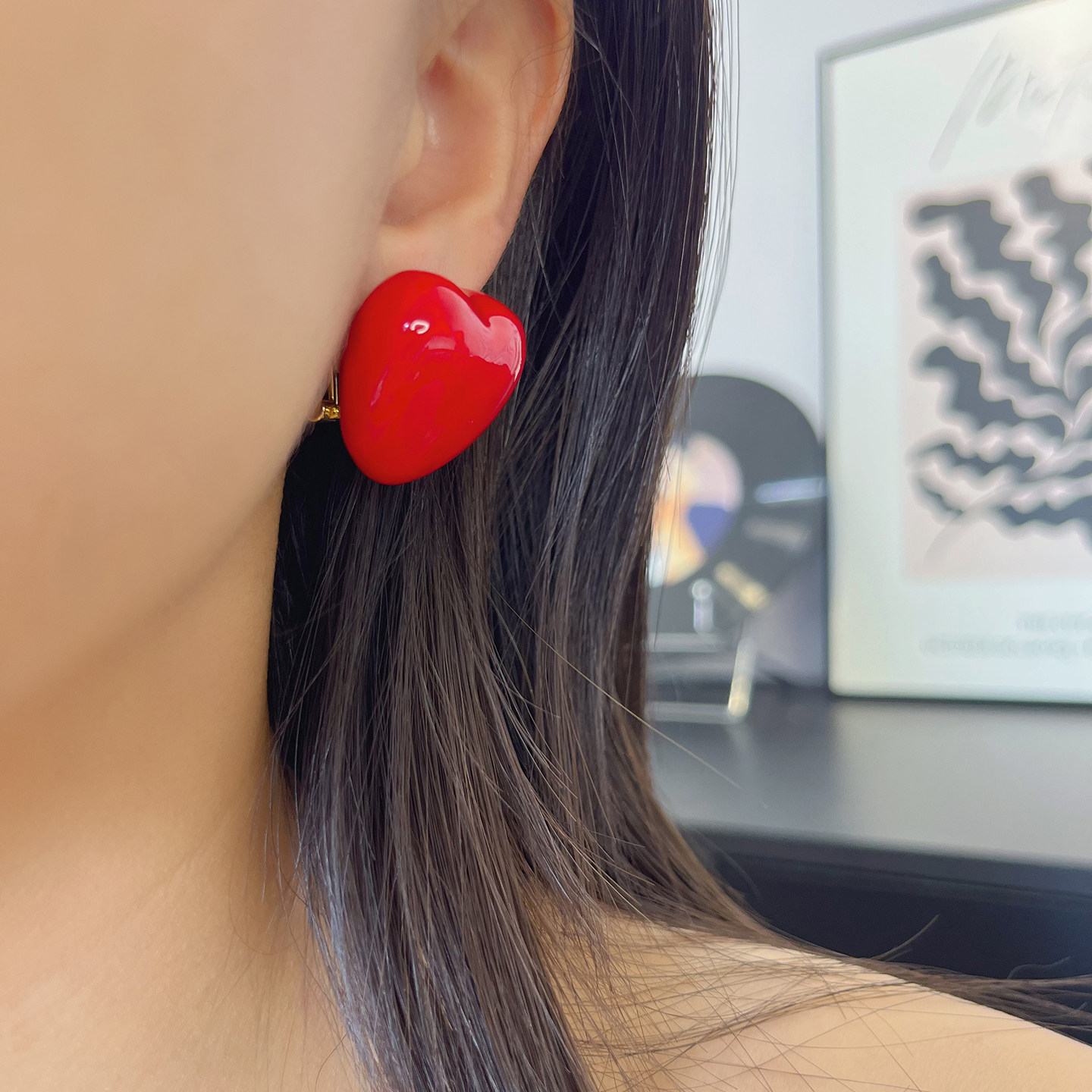 📚 夸张独特漂亮大爱心耳环2026新款爆款高级感气质大气新年红色耳饰