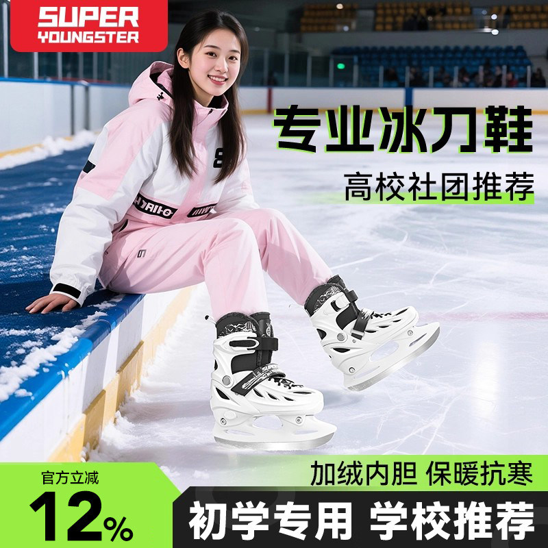 🔥冰刀鞋!成人专业男女儿童初学者必备,保暖可调码溜冰滑冰鞋,券后价309!💃