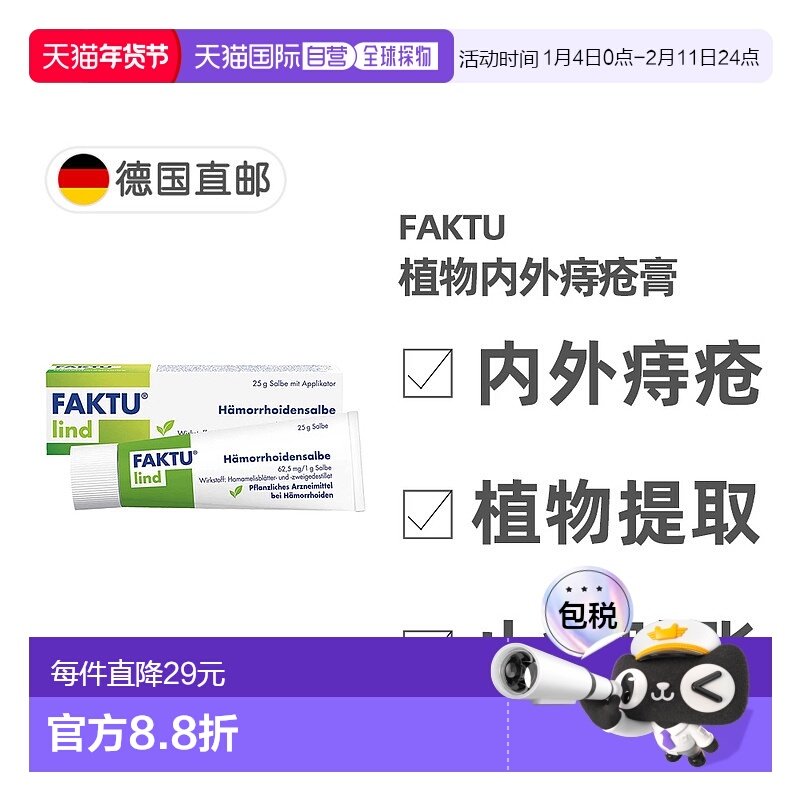 58¥ CA381 SilaU7kvhry¥ https://m.tb.cn/h.7JiobDn 欧洲直邮德国药房Faktu植物内外痔疮膏25g止血止痒消炎消肿外用 --------------------- 【原售价】339元 【现售价】169元。