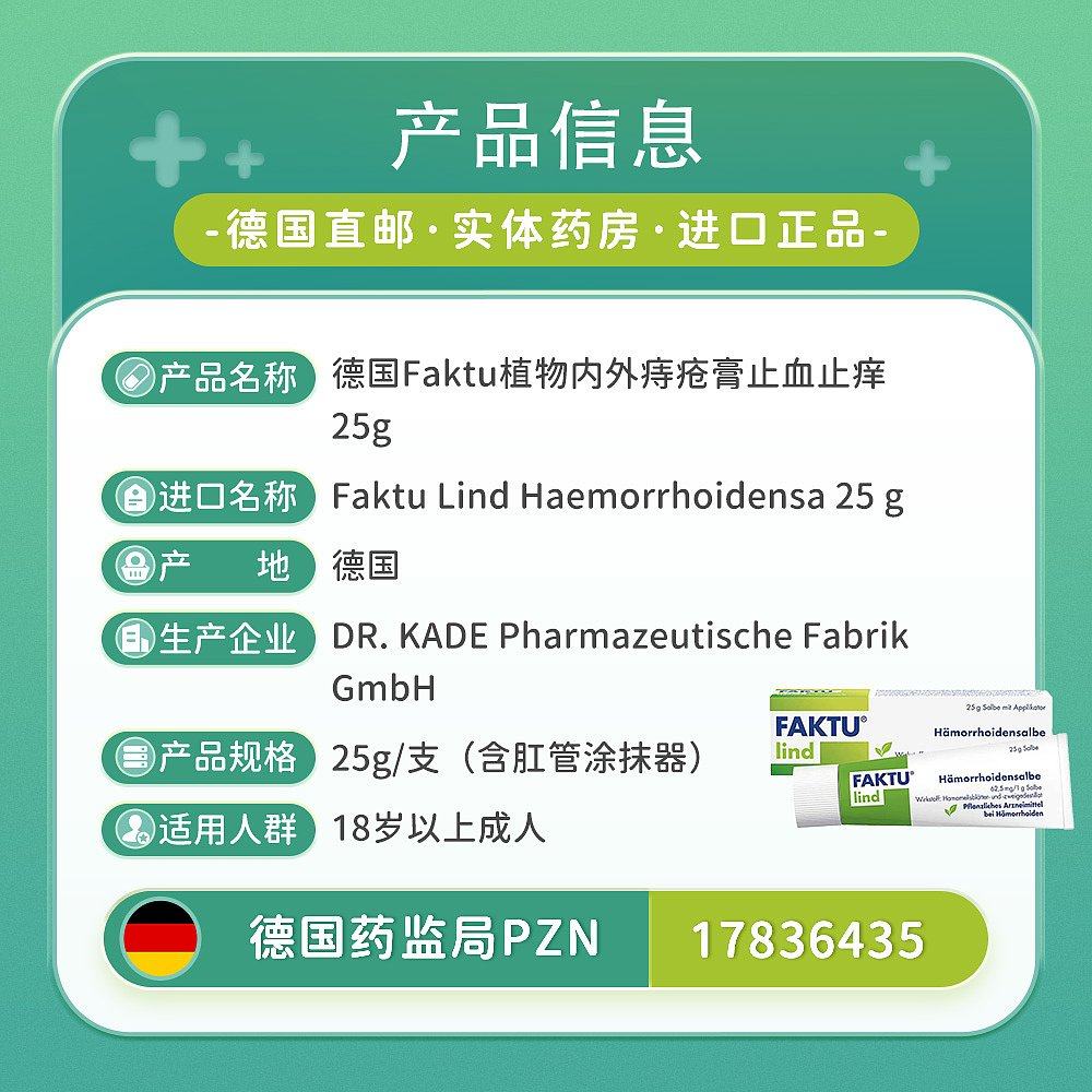 📚 欧洲直邮德国药房Faktu植物内外痔疮膏25g止血止痒消炎消肿外用