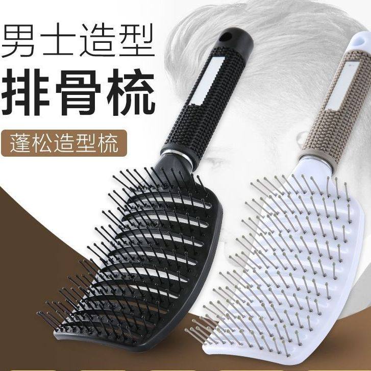 📚 头发男士蓬松大号弧形大弯排骨梳子背头美发造型宽齿卷发神器按摩