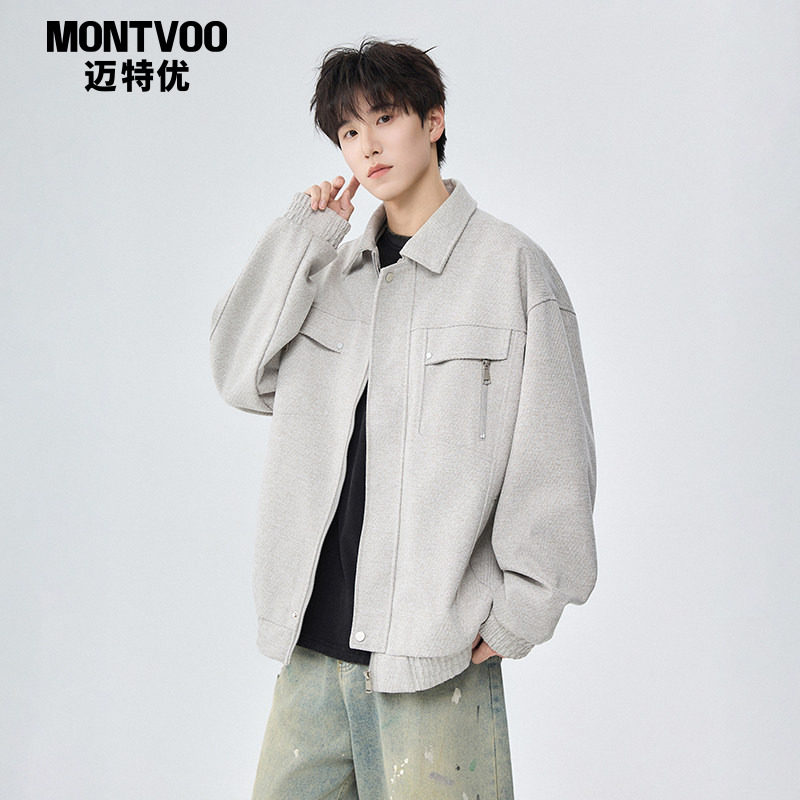 📚 迈特优老钱风翻领夹克男春秋季美式cleanfit高级感休闲哈灵顿外套