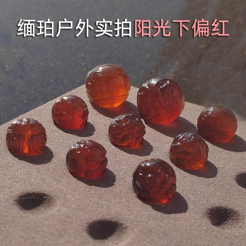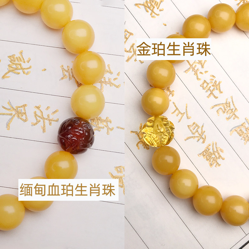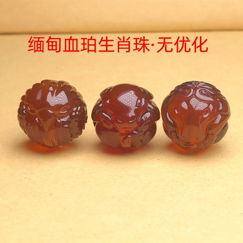 📚 【捡漏微瑕】天然缅甸棕红血珀金珀生肖珠琥珀蜜蜡散珠手串配饰