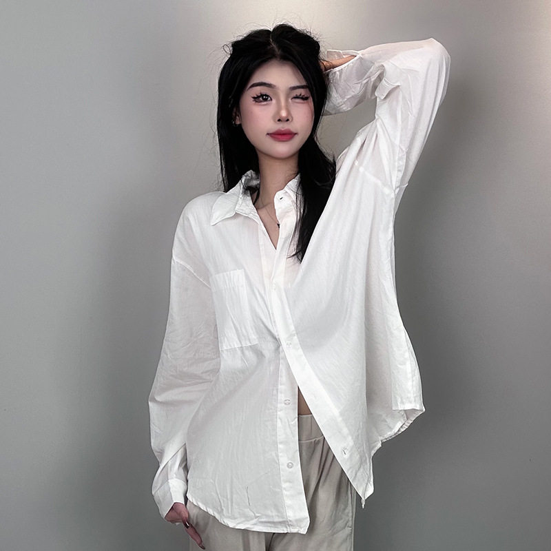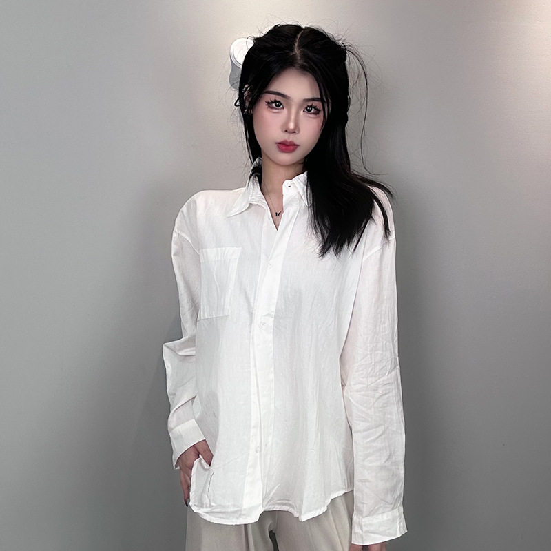 📚 实拍韩国东大门新款气质通勤韩版宽松休闲显瘦百搭长袖白色衬衫