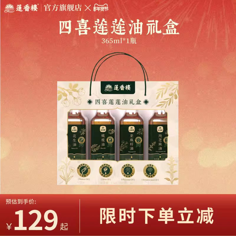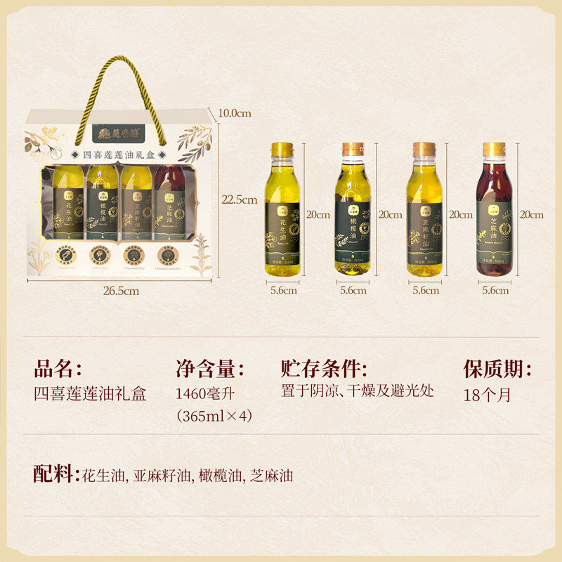📚 莲香楼四喜莲莲油礼盒装橄榄油花生油芝麻油亚麻籽油送礼组合装