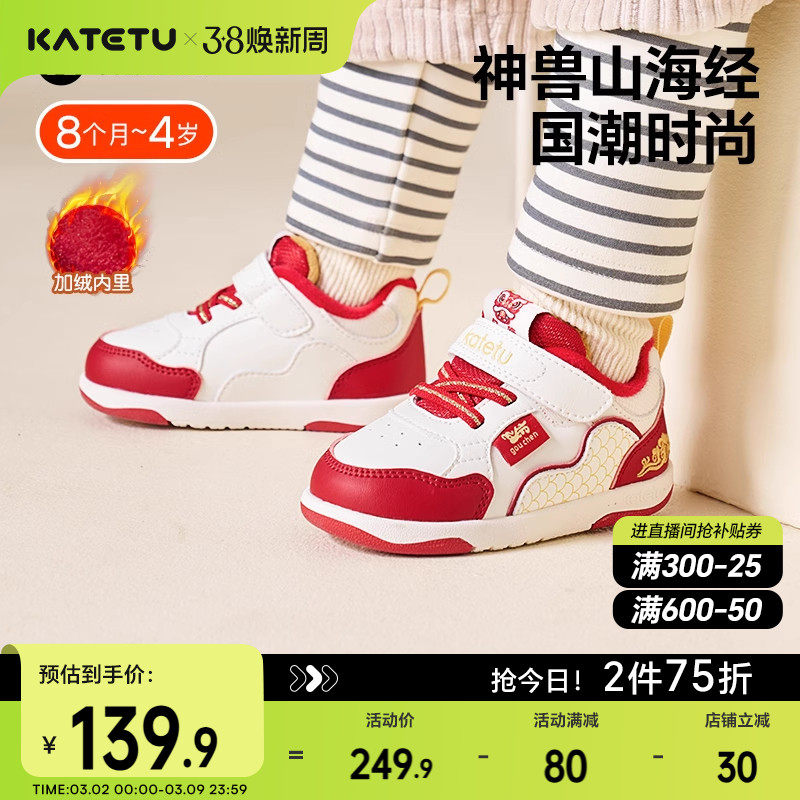 📚 卡特兔学步鞋宝宝新款鞋子加绒保暖板鞋儿童棉鞋新年男童女童